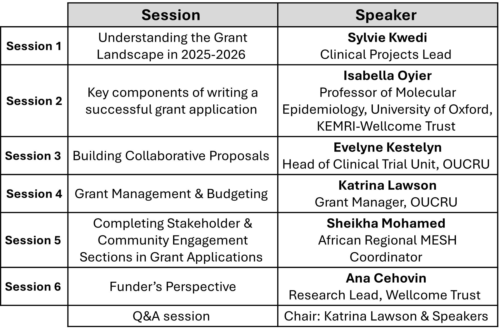 Here are the recordings of the Online Grant Writing Workshop for Early and Mid-Career Researchers, held on 21 October 2025. This workshop was jointly organised by The Global Health Network (TGHN) at the University of Oxford and the Wellcome Trust–funded Pathogen Variants Network.